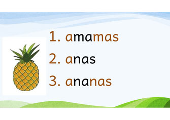 Afin de les garder actifs, engagés dans l'activité tout au long de la séance, comme ils le sont ensuite dans la partie du jeu, j'ai pensé leur proposer un genre de QCM : l'image s'affiche puis trois propositions d'écriture du mot. Les élèves observent et me montrent sur leurs doigts la proposition qu'ils pensent correcte. Je leur demande ensuite, s'il y a des divergences, de justifier leurs choix ce qui amène des discussions intéressantes. Pour finir, si besoin, je valide ou j'invalide la réponse sur laquelle ils se sont mis d'accord.